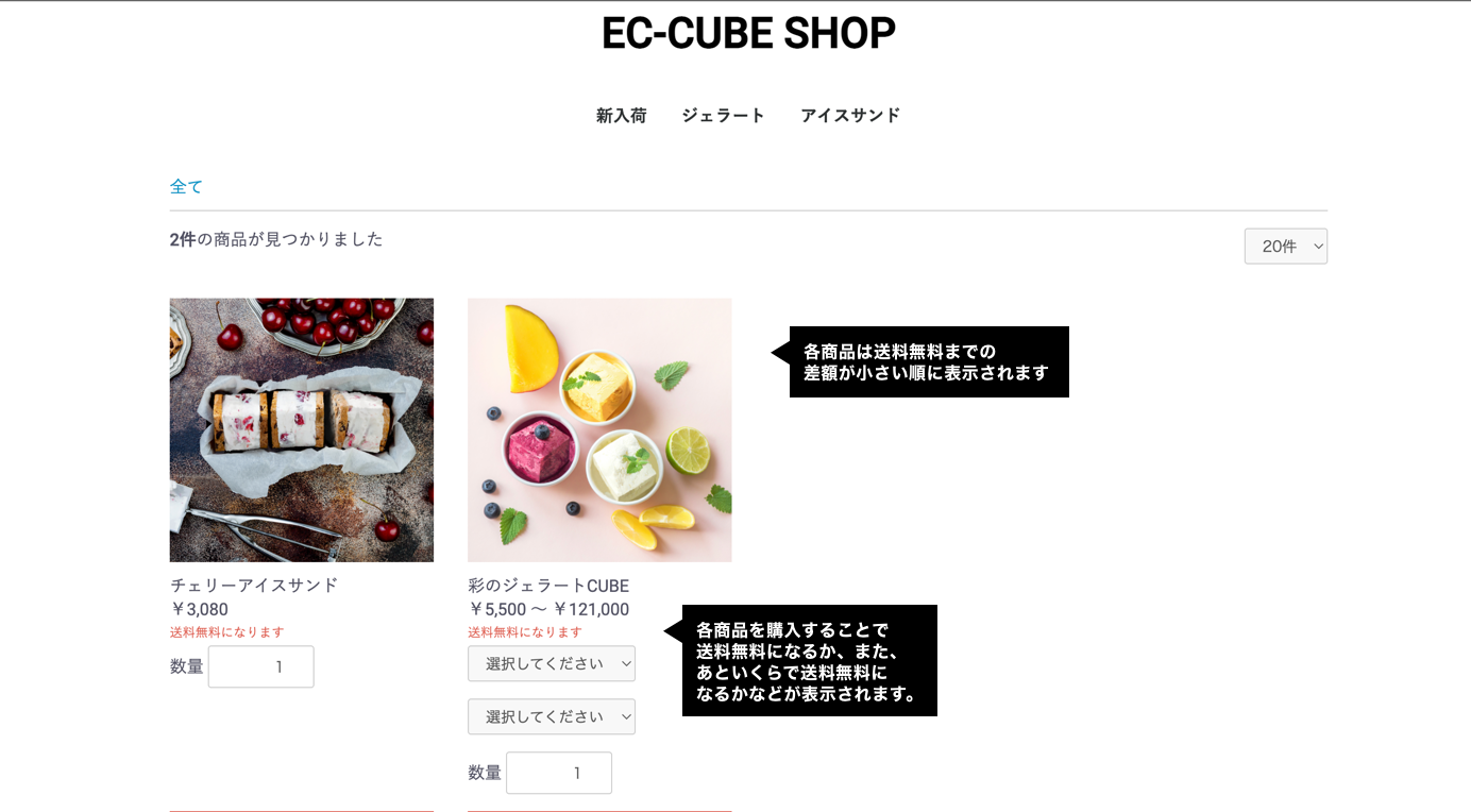 * 管理画面から「送料無料条件」を0円以上で設定している場合のみ動作します。