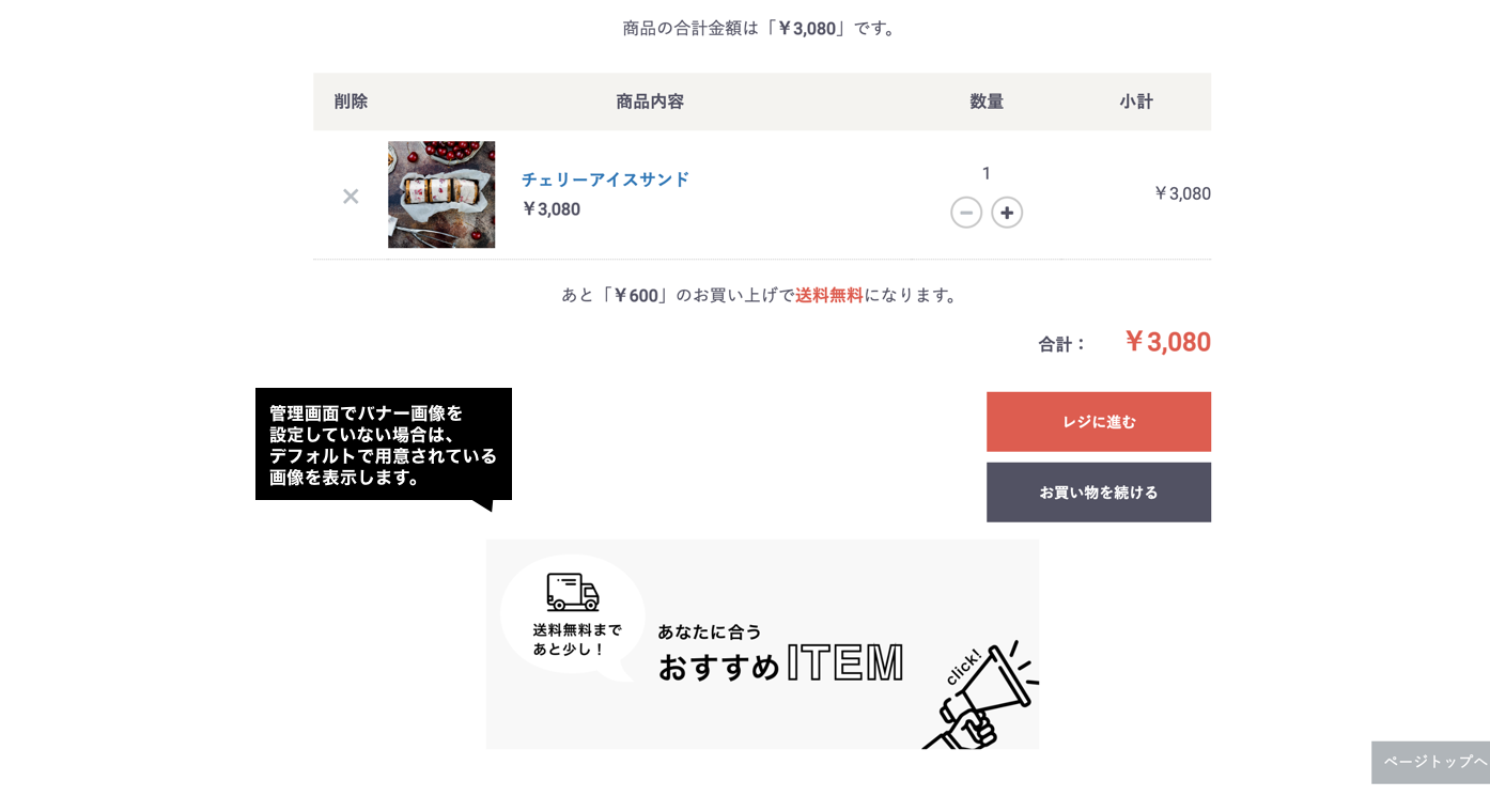 例: カートページへのバナー設置