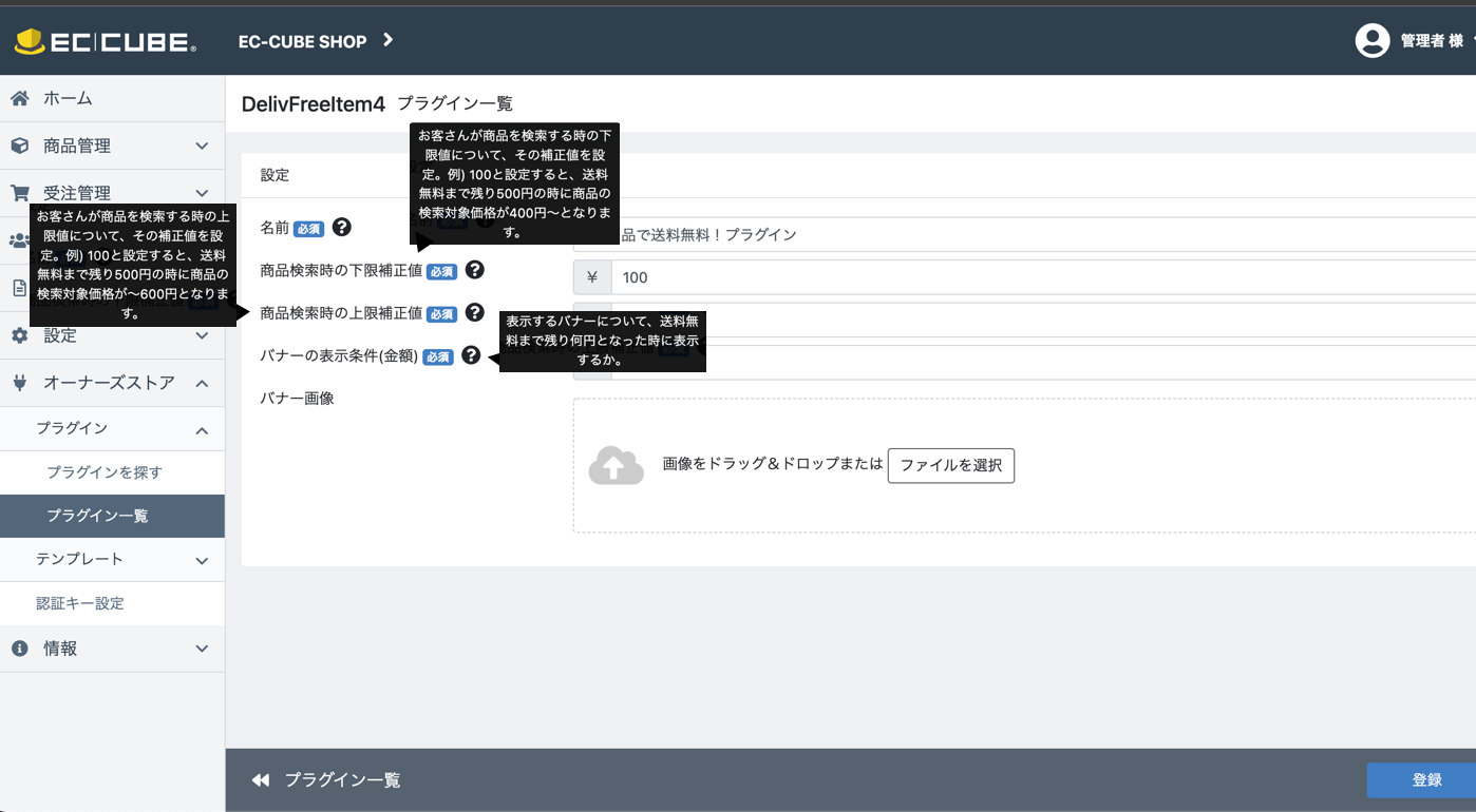 このページはEC-CUBEのプラグイン「あと1品で送料無料！プラグイン」に関するページです。 プラグインでどのようなことができるか、その詳細を記載したマニュアルとなります。